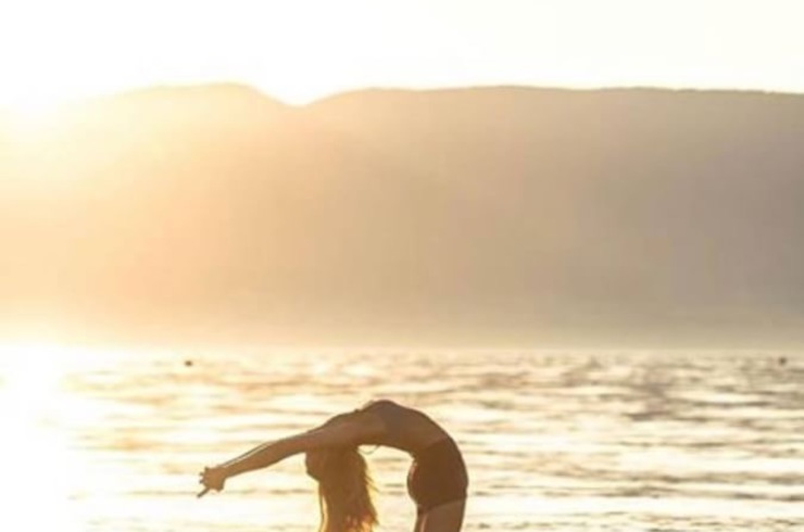 西ノ宮浜でサップヨガのシークエンスの研究。
